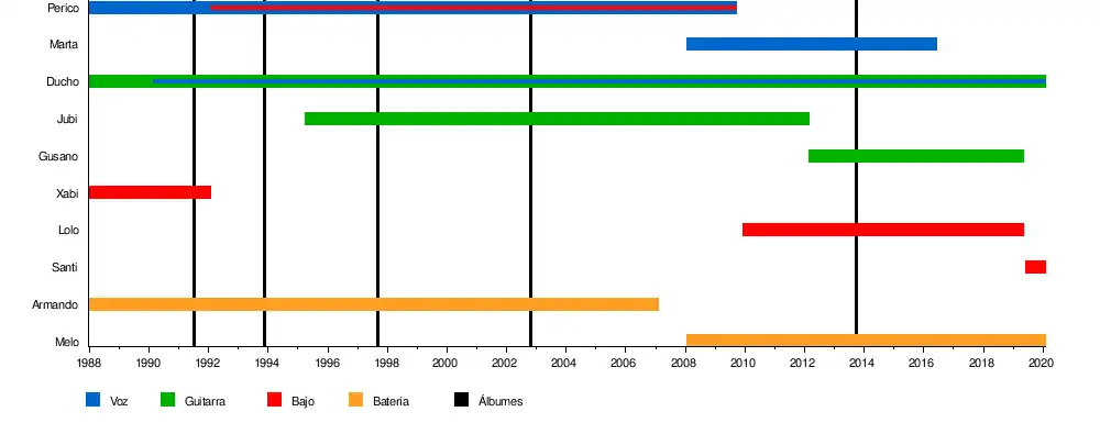 Esta es la tabla con todas las formaciones que ha presentado el grupo de punk Gatillazo desde su nacimiento en 2004 hasta el presente.
