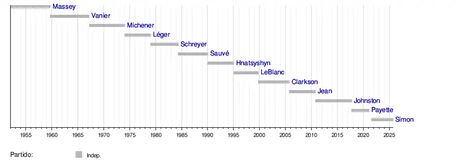 Antes de 1952, los Gobernadores Generales de Canadá eran ciudadanos británicos. Desde entonces, ha habido una nueva política de designar a ciudadanos canadienses a la posición.