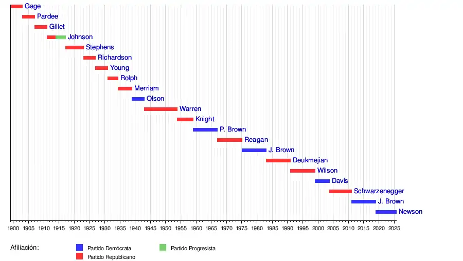 - ↑ National Governors Association. «Former California Governors» [Lista de gobernadores de California]. https://www.nga.org/ (en inglés). Consultado el 3 de noviembre de 2021.