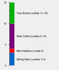 | 1 | 8 | Tony Brooks | Vanwall | 15 | 2:21:15,0 | 2 | 8 |