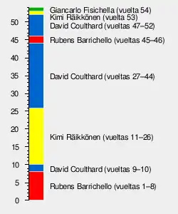 - La carrera fue suspendida en la vuelta 55 de 71, debido al fuerte accidente de Fernando Alonso.