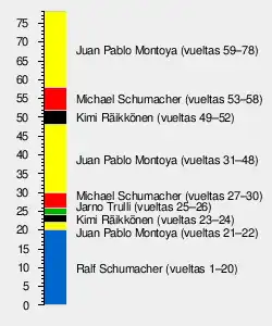 2 6 Bandera de Finlandia Kimi Räikkönen Bandera del Reino Unido McLaren-Mercedes 78 +0.602 2 8