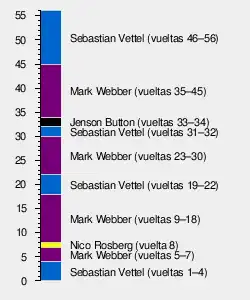 - Kimi Räikkönen fue sancionado con la pérdida de tres posiciones por obstaculizar a Nico Rosberg.[2]