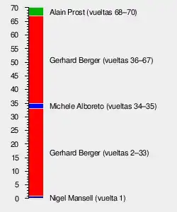 | 14 | 20 | Benetton-Ford | 64 | + 6 Vueltas | 9 | ||