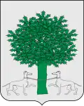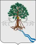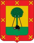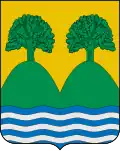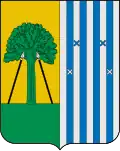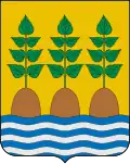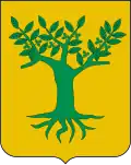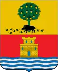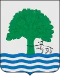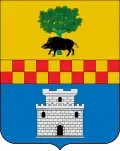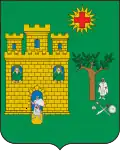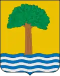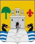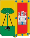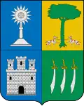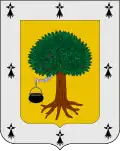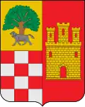 Escudo partido: 1º. De oro, con un roble de sinople sobre ondas de azur y plata. 2º. De gules, con un castillo de oro surmontado de una panela del mismo metal. |