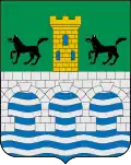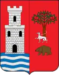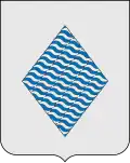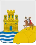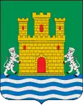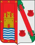 De gules con una torres de plata y dos leones rampantes a ella, uno a cada costado. Todo sobre ondas de azur y plata. [‘‘n’‘ 2] |