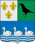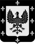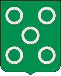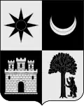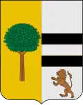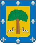 Escudo partido: 1º. De azur con una garza andante, de oro. 2º De plata con seis roeles de azur, de dos palos. Otros dicen: De plata con un roble de sinople y dos lobos de sable, linguados de gules, pasan al pie del tronco, uno ante él y el otro detrás. |