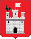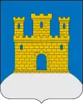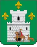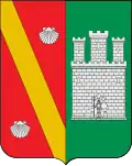 Escudo partido: 1º. De gules con un castillo de plata en cuyo homenaje hay un hombre armado, del mismo metal, que enarbola una espada en la mano diestra. 2º. De oro con un roble de sinople sobre ondas de azur y plata. |