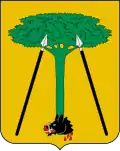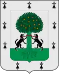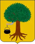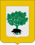 De sinople con un árbol de su color natural en el flanco izquierdo. En el diestro, una colmena de oro, con abejas del mismo metal, volando en su trono. Sobre la colmena, un podadera de oro. |