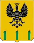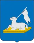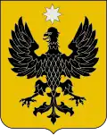 De azur con un águila volante de su color, coronada y armada de oro. | ||