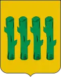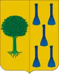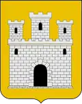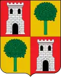 De oro, una torre de piedra acostada de dos álamos de sinople, uno a cada costado. |