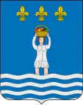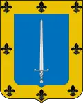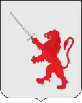 De oro, con una faja de gules; sobre la faja, un león de gules y bajo ella, seis lises de azur, dispuestas en dos fajas. |