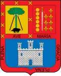 De azur con un árbol de sinople, al que está atado con cinta de gules un perro de plata manchado de sable, empinado al tronco. A su izquierda, un castillo. Sobre el árbol una medida luna figurada, de plata. Entre ambos, una estrella de oro. Y en cada ángulo del jefe, un lucero, igualmente de oro. Otros dicen: Escudo cuartelado: 1º y 4º. De oro, con un acebo de sinople. 2º y 3º. De plata, con un lobo andante de sable. Bordura general de gules, con ocho aspas de oro. [‘‘n’‘ 4] |
