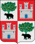 En campo de sinople una colmena de oro, con abejas volando en derredor, es asaltada por un oso de su color natural. A su izquierda un hombre armado, de plata, intenta herir al oso con un alanza. Y un castaño, de su natural color. [‘‘n’‘ 3] |