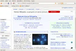 Firefox 1.5 en Ubuntu mostrando la portada de Wikipedia.