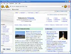 Firefox 2 en Ubuntu mostrando la portada de Wikipedia inglesa.