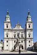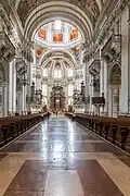 21= | 81,0 | Catedral de Salzburgo | Salzburgo | 1614 | 1628 | Obra barroca de Santino Solari. Resultó dañada en 1944 durante la II Guerra Mundial cuando una única bomba atravesó la cúpula central sobre el crucero. Las reparaciones tardaron un poco en realizarse y se completó en 1959. Altura de la nave: 32.22 m.[13] | |