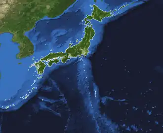 - ↑ «離島とは(島の基礎知識) (what is a remote island?)» (website). MLIT (Ministry of Land, Infrastructure, Transport and Tourism) (en japonés). Ministry of Land, Infrastructure, Transport and Tourism. 22 de agosto de 2015. Archivado desde el original el 13 de julio de 2007. Consultado el 9 de agosto de 2019. «MILT classification 6,852 islands(main islands: 5 islands, remote islands: 6,847 islands)».
