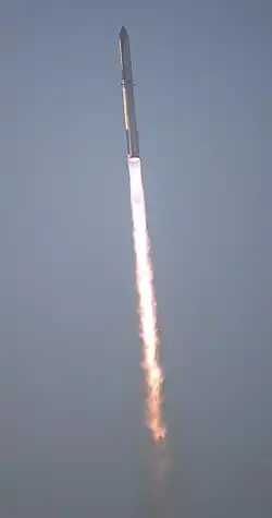 Starship planea ser un vehículo de lanzamiento súper pesado totalmente reutilizable. La etapa superior de Starship está destinada a funcionar como una segunda etapa para alcanzar la velocidad orbital en lanzamientos desde la Tierra,[1] y también se utilizará en el espacio como una nave espacial de misiones de larga duración.[2][3] El vehículo está siendo diseñado y operado por el fabricante privado estadounidense SpaceX.[4]