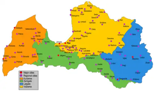 Wikimedia Commons alberga una categoría multimedia sobre Localidades de Letonia.- Vietas.lv- Mapa e información de ciudades y distritos