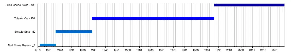 - Datos insuficientes entre los años 1916 y 1925 para contabilizar los registros, sin embargo se reconoce a Abel Flores Reyes como goleador del equipo.
