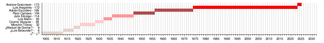 - ↑ En dos etapas en el club: entre 1921-22 y 1925-29.