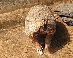 Los armadillos son mamíferos pequeños, con una coraza ósea. Hay 21 especies existentes en las Américas, 19 de los cuales sólo se encuentran en América del Sur, donde se originaron. Sus parientes mucho más grandes, el pampaterios y gliptodontes, vivieron una vez en América del Norte y del Sur, pero se extinguieron tras la aparición de los seres humanos.