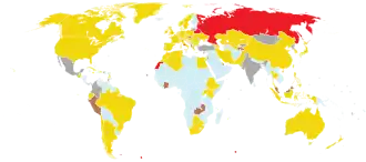 Oro para los países que consiguieron, al menos, una medalla de oro. Plata para los países que no consiguieron ninguna medalla de oro, pero sí, al menos, una medalla de plata. Bronce para los países que no consiguieron ninguna medalla de oro o plata, pero sí, al menos, una medalla de bronce. Azul para los países que no consiguieron ninguna medalla. Rojo para las entidades que no participaron.