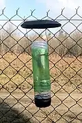 Trampa para avispas asiáticas fabricada con una botella de plástico cortada en dos: para colocar el embudo al revés en la botella se coloca el cebo (cerveza, vino y jarabe de grosella negra). La avispa asiática entra pero no consigue salir, y termina ahogándose en el líquido. Se debe proteger la trampa de la lluvia, para evitar que la botella se llene de agua. En el fondo de la botella se coloca un peso para dar estabilidad a la trampa. Para evitar que estas trampas también atrapen abejas es imprescindible no poner un alimento dulce. La cerveza negra, el jarabe de grosella, el vino tinto o blanco pueden ser atractivos para la avispa asiática y a su vez un repelente para las abejas.