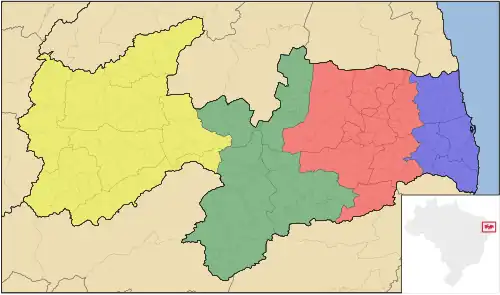Mapa de las Mesorregiones de Paraíba.