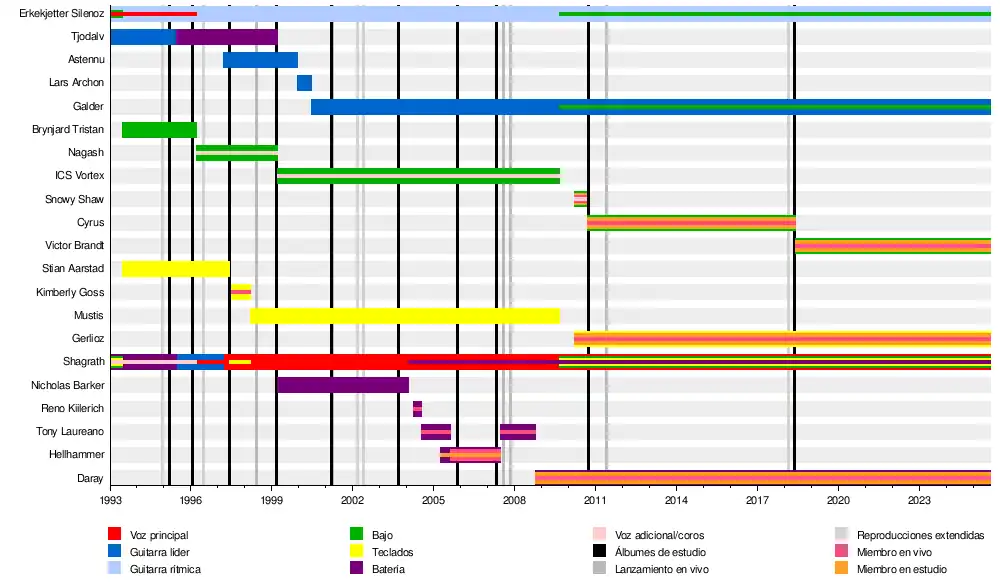 - Participación: En los álbumes musicales desde Spiritual Black Dimensions hasta In Sorte Diaboli.