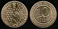 | Centenario del nacimiento de Robert Schuman | 1986 | ROBERT SCHUMAN - Letra E hecha con estrellas - LIBERTÉ·ÉGALITÉ·FRATERNITÉ | 10 FRANCS - Gallo estilizado - RÉPUBLIQUE FRANÇAISE - año de acuñación | |