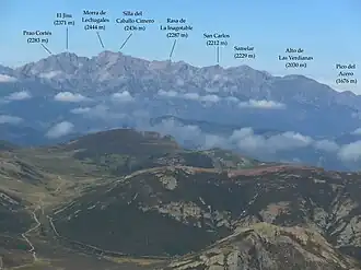 Son 40 las cumbres que superan los 2500 m, todas ellas, menos una, pertenecientes al macizo de los Urrieles.