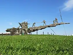 Estructura de cemento y granito. La mano negra fue agregada en el 2000 |