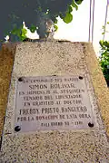 Placa de bronce fundido en altorrelieve incrustada en un pedestal |