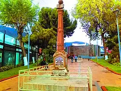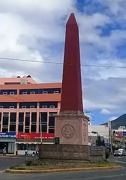 Monumento dedicado a Benito Juárez, se inauguró el 18 de julio de 1922, al cumplirse 50 años de la muerte de Benito Juárez.[7] En esa fecha se colocó el monumento en la parte norte de la Plaza Independencia, en los años 1930, al remodelar la plaza se colocó en el jardín exterior de la Parroquia de la Asunción.[7] Características El busto de Benito Juárez se alza sobre un pedestal, de cerca de dos metros de altura. Cuenta con una placa en la que se lee: " Al gran orador y benemérito de América C. Lic. Benito Juárez". El pedestal se alza sobre una base de cuatro escalones de alto y cuenta con cuatro pilares, todo esto perimetrado por una serie de cadenas. Ubicación Enfrente de la Parroquia de la Asunción. Coordenadas | ||||