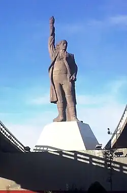 Dedicado a Miguel Hidalgo, y consiste en una estatua monumental del personaje; mide 15 metros de altura y pesa 130 toneladas.[39] La parte frontal se encuentra en dirección sur mientras que la mirada de la estatua se encuentra mirando en dirección este, en su mano izquierda sostiene una cadena rota y en la mano derecha que tiene levantada una antorcha. Durante la Pandemia de COVID-19 en Hidalgo, se le colocó cubrebocas.[13][14] El 28 de noviembre de 2020, fue movido de su ubicación, debido a las obras de construcción del puente atirantado en la intersección de bulevar Felipe Ángeles y bulevar Colosio;[40] el 1 de junio de 2021, fue puesto en su nueva ubicación.[41] Ubicación Se encuentra en el centro en el Distribuidor Vial Miguel Hidalgo. Coordenadas | ||||