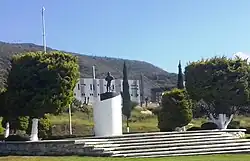 Pequeño monumento dedicado al gobernador de Hidalgo Vicente Aguirre del Castillo. En el año 2011 fue restaurado después de sufrir vandalismo reiterado.[52] Características Se trata de un busto del personaje sobre un pedestal cuadrado, en la parte posterior se encuentra enmarcado por una pared semicircular. Cuenta con una placa en la que se lee: "Lic. Vicente Aguirre del Castillo (1908-1998) Gobernador Constitucional del Estado de Hidalgo en 1945 - 1951 decreto la autonomía del Instituto Científico y Literario el 23 de marzo de 1948 y creó la cárcel central del estado". Ubicación Se encuentra localizado en el Parque Hidalgo, en el centro histórico de la ciudad. Coordenadas | |