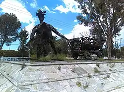 Anteriormente era una columna conmemorativa donde se encontraba una escultura ecuestre de Felipe Ángeles, pero después de la remodelación del Distribuidor Vial Puente Colonias y la construcción del Tuzobús fue remodelado. Fue reinaugurado en una ceremonia el 8 de noviembre del 2013 y forma parte de los festejos de los 100 años del Ejército Mexicano.[57] Durante la Pandemia de COVID-19 en Hidalgo, se le colocó cubrebocas al monumento.[13][14] Características Este monumento cuenta con una estatua ecuestre que se alza sobre una columna cuadrangular, desde su base salen cuatro muros triangulares los cuales tienen horadaciones en forma de cañones. Cuenta con un placa donde se lee: El Estado de Hidalgo rinde homenaje al Ejército Mexicano por sus 100 años de honor y lealtad. Ubicación Se encuentra ubicado en la salida a la Ciudad de México, en la Avenida Felipe Ángeles. Coordenadas | |