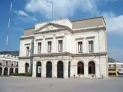 Este teatro de estilo neoclásico construido entre los años de 1957 y 1963. Sobresale en su fachada de cantera los arcos de medio punto, las ventanas rectangulares con cornisa entrecortada y un frontón rectangular con un escudo en altorrelieve.[15] Se encuentra ubicado en la Plaza Juárez.