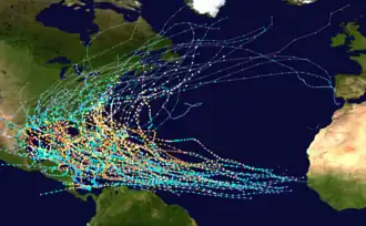 | Ike | 1-14 de septiembre de 2008 | Huracán categoría 4 | 230 km/h | 935 hPa | Antillas Mayores, Estados Unidos | 195 | $ 38 mil millones | Isaias |