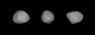 - ↑ a b c d e f M. Kaasalainen (2002). «Models of Twenty Asteroids from Photometric Data». Icarus 159 (2): 369-395. Bibcode:2002Icar..159..369K. doi:10.1006/icar.2002.6907. Consultado el 28 de abril de 2019.
