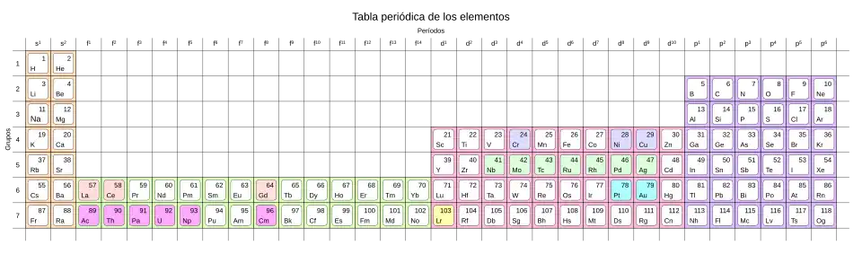 | Elemento | Símbolo | N. atómico | Periodo | Grupo | Ot | Or |