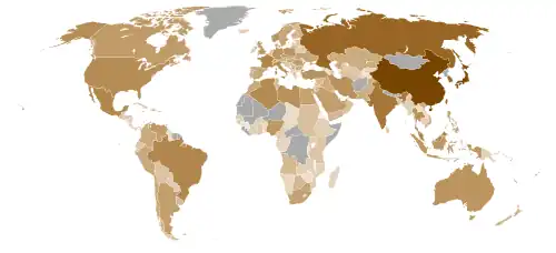 - ↑ a b c d e f g h i j k l m n ñ o p q r s t u v w x y z aa ab ac ad ae af ag ah ai aj ak al am an añ ao ap aq ar as at au av aw ax ay az ba bb bc bd be «Country Comparison :: Reserves of foreign exchange and gold». The World Factbook (en inglés). Consultado el 12 de febrero de 2011.