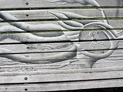 | Óscar Barra | Isidora Goyenechea, acera norte, entre Augusto Leguía y Carmelita | El navegante de la plaza, acrílico sobre madera |