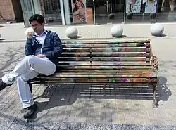 | José Délano | Diseñador | calle Esmeralda | Délano y su banca Detalle | |