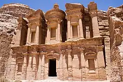 Situada entre el mar Rojo y el mar Muerto, esta ciudad nabatea estuvo habitada desde los tiempos prehistóricos. En la Antigüedad fue una importante encrucijada de las caravanas comerciales que transitaban entre Arabia, Egipto, Siria y Fenicia. En parte esculpida en la roca y en parte construida en medio de un circo de montañas surcadas por pasos y desfiladeros, Petra es uno de los sitios arqueológicos más celebres del mundo, en el que se mezclan las influencias de las tradiciones del antiguo Oriente y las de la arquitectura helenística. (UNESCO/BPI)[1]