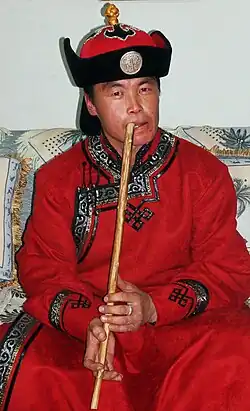 La flauta limbe es una flauta travesera, fabricada con madera noble o bambú, que se utiliza para la interpretación del canto largo popular mongol. Gracias a la técnica de la respiración circular, los flautistas pueden ejecutar las melodías continuas características de este canto. Los músicos inspiran por la nariz y expulsan simultáneamente por la boca el aire que han almacenado en los carrillos, logrando así tocar la flauta sin interrupción. Una estrofa de un canto largo popular suele tener una duración de cuatro a cinco minutos, y un canto consta de tres a cinco estrofas, lo que supone tocar la flauta continuamente por espacio de doce a veinticinco minutos. Los métodos de formación tradicionales utilizados para adquirir esta técnica comprenden ejercicios consistentes en soplar el mayor tiempo posible sobre la llama de una vela, sin apagarla, o soplar en una paja sumergida en vaso de agua. La flauta limbe se caracteriza por las notas eufónicas, el melisma, y las melodías ocultas que produce, así como por los movimientos diestros y delicados de la lengua y los dedos que exige su práctica. La disminución considerable del número de personas y grupos que tocan este instrumento hace que sean muy pocos los depositarios de esta tradición musical, lo cual no deja de ser muy preocupante. Esta situación obedece en parte al predominio que han cobrado las formas musicales y los sistemas de formación extranjeros. Hoy en día, sólo quedan catorce especialistas de la flauta limbe y eso hace que la frecuencia y el radio de acción de la práctica de este instrumento tradicional sean muy inestables. (UNESCO/BPI)