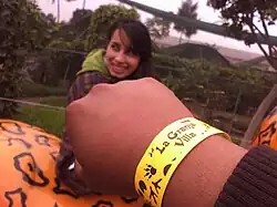 Brazalete para entrar a la Granja Villa, lugar de atracciones clausurado el 17 de agosto y posteriormente reaperturado el 24 de agosto, tras llegar a un acuerdo con la municipalidad de Chorrillos.[49]17 de agosto: La municipalidad de Chorrillos, clausura la "Granja Villa" por riesgo de exposición a conexiones eléctricas e inconvenientes con los juegos metálicos. Los extrabajadores del local llevarían a cabo diversas marchas en contra de este cierre “arbitrario y abusivo” según sus propias palabras, estos provocarían ciertos enfrentamientos con el serenazgo municipal.