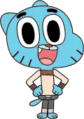 Gumball Tristopher Watterson es el protagonista de la serie y es un gato azul antropomórfico, que en repetidas ocasiones se mete en problemas pero nunca aprende la lección. Tiene 12 años y está enamorado de una compañera de clase llamada Penny y se comporta de forma extraña al estar con ella. A pesar de su comportamiento revoltoso e increíblemente egoísta, puede ser leal, serio y de buen corazón. Al mismo tiempo, ha demostrado ser celoso a lo largo de la serie, pero también ser una persona mucho más inteligente de lo que piensan y bastante optimista. Su vestimenta consta de un suéter canela con los puños de color marrón y pantalones gris oscuro, con las orillas de color canela. Su nombre original era Zac.